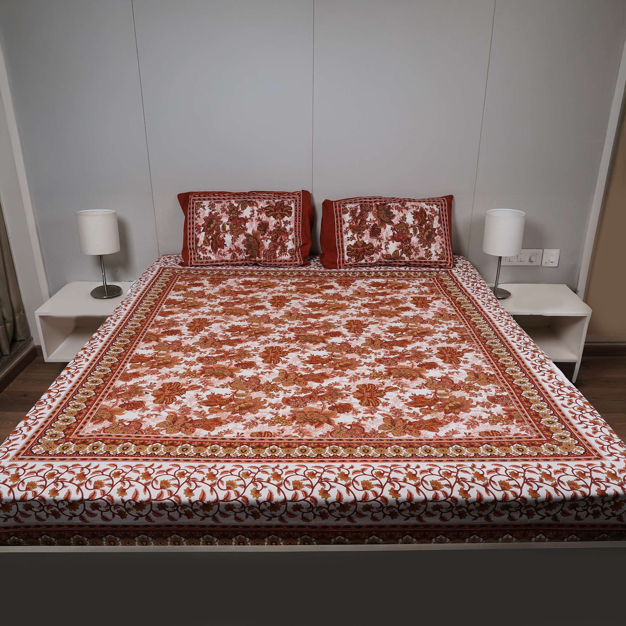 Autumn Bloom showcases rich rust and earthy floral patterns on a soft light base, bringing warmth and depth to your bedroom. The detailed print adds a classic, handcrafted feel without appearing heavy.