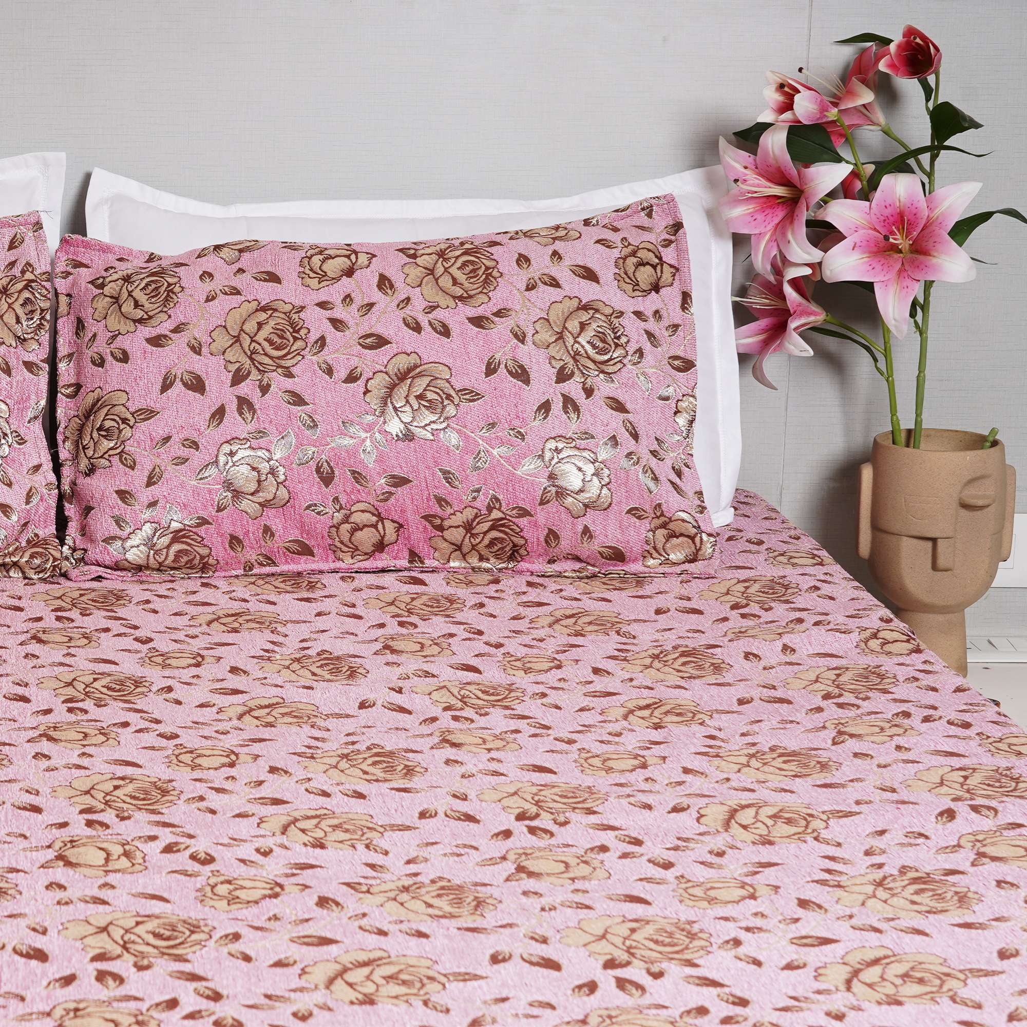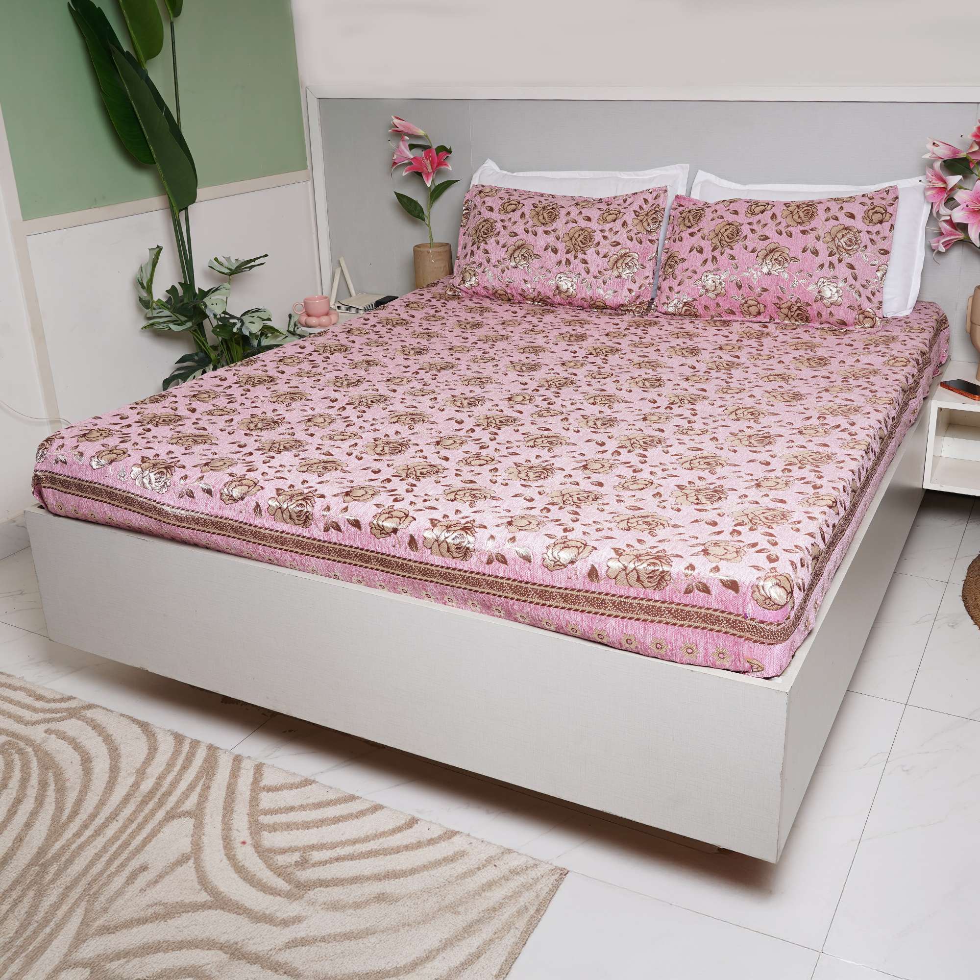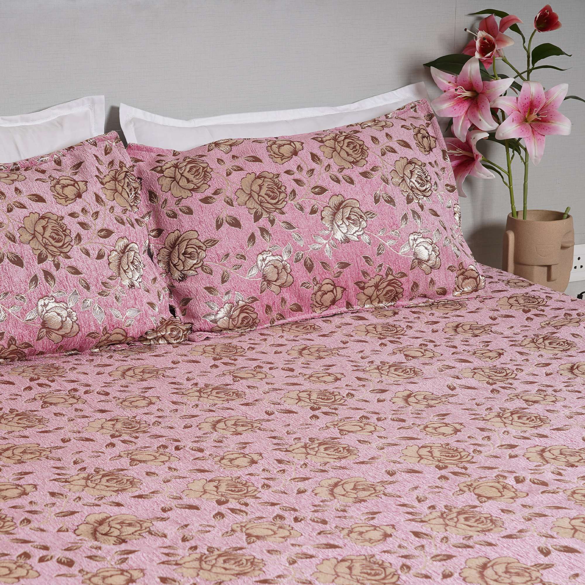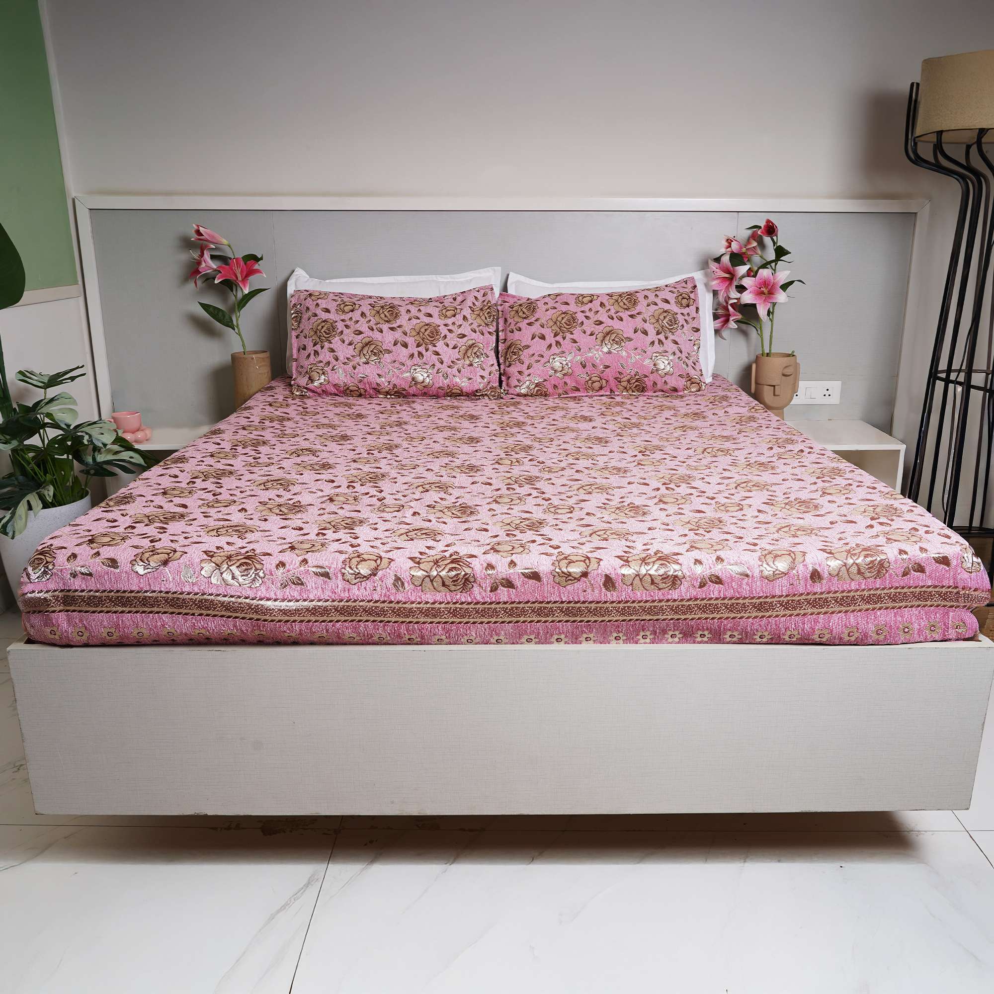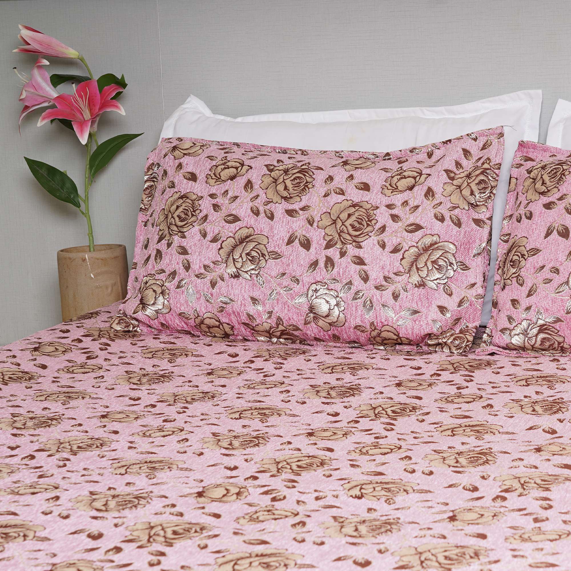 Soft blush tones meet delicate floral detailing in the Chanel Blush Velvet Bedding Set, creating a warm and graceful bedroom ambiance. The velvet-textured surface adds depth and subtle sheen, while the cozy fabric ensures everyday comfort with refined elegance.